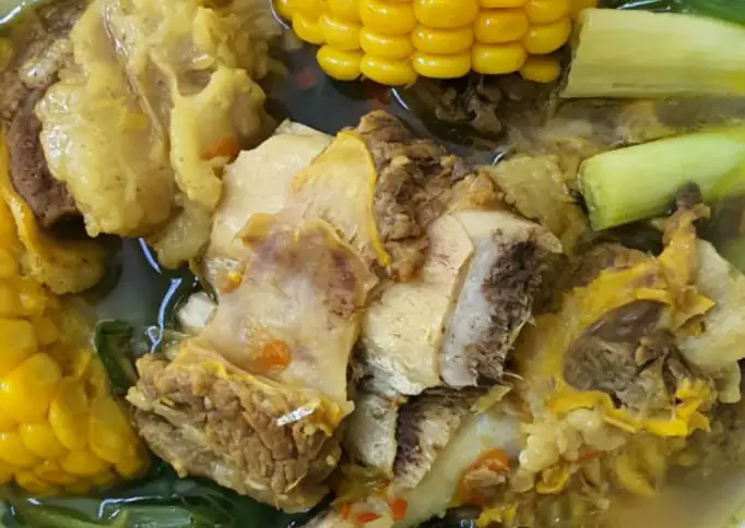 Siapkan semua bahan2 yg sdh di cuci bersih. Haluskan semua bumbu pounding grocerry. Didihkan air dan rebus iga dgn sedikit air mineral selama 5 menit,lalu buang air rebusan,cuci iga dgn air mineral hingga bersih dr kotoran iga. Tumis serai geprek bagian hijau hingga harum lalu masukkan bumbu halus tumis bumbu sampai matang dan harum. Masukkan kecap ikan tumis kembali dan tuangi sedikit air,didihkan. Masukkan iga tumis sebentar,lalu tambahkan air,garam dan gula,masak hingga iga empuk. Kemudian masukkan jagung manis,masak hingga jagung matang lalu masukkan kangkung dan daun bawang masak sebentar aja supaya kangkung msh kres2 kalo di makan,angkat. Sajikan beef rib soup selagi panas,enak banget di makan pd saat cuaca hujan spt saat ini. Rasanya yg pedes gurih nikmat bgt deh.