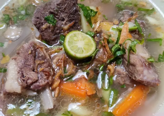 Gunakan 1/2 kg iga sapi. Ambil Bahan pelengkap. Sediakan Wortel. Ambil Kentang. Siapkan Buncis. Siapkan Daun bawang + seledri. Gunakan Bawang goreng. Siapkan Jeruk limo. Siapkan Bumbu cemplung. Gunakan 1/2 biji pala. Gunakan Sejumput klabet (optional). Ambil 3 cm kayu manis. Siapkan Bumbu halus. Gunakan 1/2 sdt merica. Siapkan 1/2 bawang bombay ukuran besar. Ambil 7 bawang putih.Punya Stok Iga Sapi di rumah? Coba saja resep sup iga sapi sederhana berikut ini. Rasanya yang sedap, gurih dan menghangatkan, menjadikan hidangan ini sangat pas untuk disantap di kala cuaca. Mulai dari iga bakar, rawon iga sapi, tongseng iga sapi, sampai sup iga sapi; semuanya selalu jadi Kali ini akan dibahas resep sup iga sapi yang tak biasa karena menggunakan kemangi sebagai.