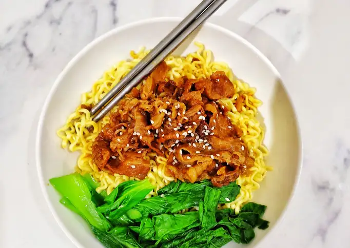 Mie + sliced beef lembut lumer di lidah (super simple).