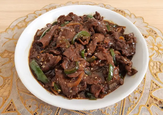 Rendam daging dengan bumbu marinasi, lalu simpan ke dalam lemari es selama 30 menit.. Tumis bawang putih hingga harum, lalu masukan rendaman daging yang sudah di marinasi beserta bumbunya dan tambahan lagi sedikit gula dan garam bila perlu.. Kemudian aduk-aduk hingga daging berubah warna lalu tuangkan sedikit air panas dan diamkan beberapa saat hingga daging empuk dan bumbu mulai meresap. Tes rasa.. Jika rasa sudah pas, masukan potongan bawang bombay, paprika hijau, dan sedikit biji wijen. Aduk hingga semua bahan tercampur rata hingga matang dan rasanya pas..