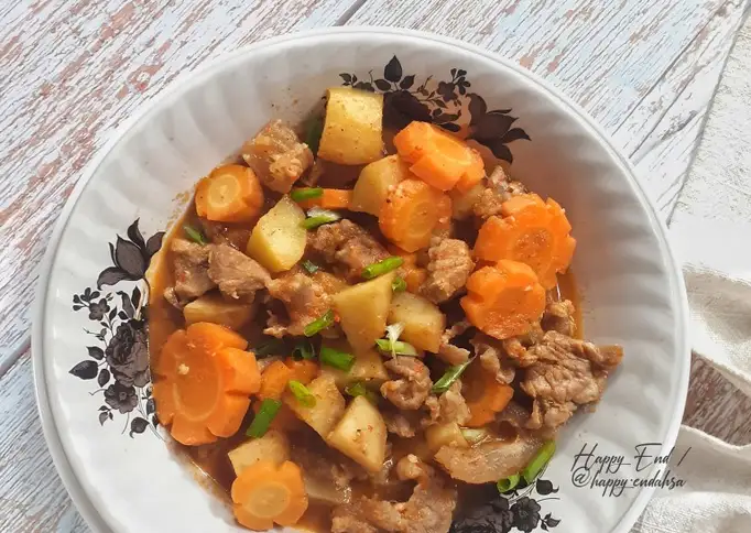Gunakan 300 gr kerewed (Daging Tetelan Sapi). Siapkan 2 buah kentang ukuran sedang (200 gr). Siapkan 1 wortel manis uk sedang. Gunakan 2 lembar daun salam. Siapkan 1 sdm kecap manis. Gunakan 1 buah tomat, iris-iris (saya skip). Sediakan 1 batang daun bawang. Siapkan 1 ruas jahe, geprek. Ambil 1 ruas lengkuas, geprek. Gunakan 1 batang serai, geprek (saya skip, kehabisan). Ambil đ§ Bumbu Halus :. Ambil 3 siung bawang merah. Gunakan 3 siung bawang putih. Ambil 5 cabe merah keriting (saya pakai 2 cabe merah besar). Siapkan 5 cabe rawit, sesuaikan selera pedas saja. Siapkan Secukupnya garam. Siapkan 1 sdm gula merah, sesuaikan. Ambil 1 sdt kaldu jamur, sesuaikan. Ambil 1/4 sdt lada bubuk, sesuaikan. Siapkan 1/3 sdt pala bubuk, sesuaikan. Siapkan (yang doyan pedas bisa tambah cabenya).