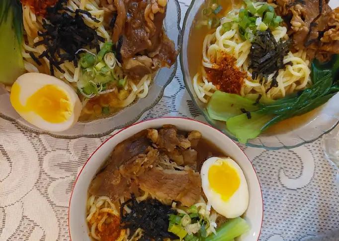 Pertama buat kuah ramennya dulu, campur bumbu ramennya dgn air 2 liter air masak hingga mendidih. Kedua, rebus telur sampai 7 menit setelah itu masukkan telur ke dalam larutan kecap asin 2 sloki lalu tambahkan air matang 5 sloki dan tambahkan garam. Tunggu sampai telur bewarna kecoklatan. Lalu rebus pakcoy (kalo aku ga mau yg terlalu matang agar vitaminnya tidak hilang). Untuk buat beef nya saya tumis pakai bawang putih dan bombay dgn saus teriyaki. .You could even substitute with thinly sliced boneless pork loin chops. It appeals to everyone in our family, is super easy for busy nights and saves us money spent on take out! See more ideas about ramen recipes, beef ramen recipe, recipes. Pork-based tonkotsu is the most famous Homemade Shin Cup-Style Spicy Korean Ramyun Beef Noodle Soup. Which Ramen Noodles Should I use?