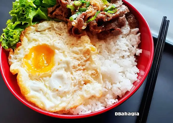 Ambil 250 gr daging sapi iris tipis atau beef slice. Sediakan 2 sdm biji wijen sangrai. Sediakan 1 butir bawang bombay. Sediakan 1 batang daun bawang. Ambil 2 sdm mentega. Siapkan Bumbu marinasi :. Sediakan 3 siung bawang putih parut. Gunakan 2 sdm saus Teriyaki. Ambil 1 sdm kecap asin. Gunakan 1 sdm kecap manis. Sediakan 1 sdm saus tiram. Sediakan 1 sdm madu atau gula. Gunakan 1 sdt lada hitam. Ambil 1 sdt kaldu bubuk. Ambil 1/2 sdt garam. Gunakan 1 sdt saus tomat. Siapkan 1 sdt minyak wijen optional.