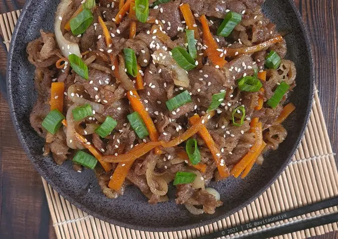 Gunakan 500 gram sliced beef. Siapkan 100 gram wortel. Siapkan 1 bawang bombay. Siapkan Bumbu marinasi. Ambil 8 sdm kecap asin. Siapkan 2 sdm gula. Ambil 2 sdm madu. Siapkan 2 sdm minyak wijen. Ambil 1 sdt lada hitam bubuk. Siapkan 4 siung bawang putih. Ambil 1/2 bawang bombay. Sediakan Taburan. Sediakan Wijen. Siapkan Daun bawang.How to make Bulgogi easily at home. Turn on CC (caption) for the exact recipe. I share best beef cuts for bulgogi and also how to slice cuts at home. I used flank steak in the video and sorry, I think I made a mistake and said it's strip steak!