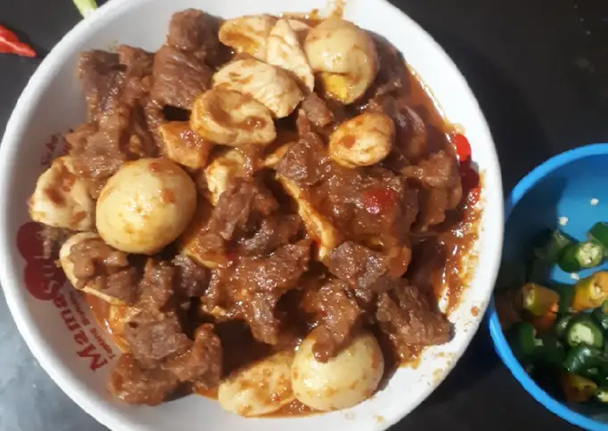 Oseng tetelan,telur puyu dan otak2. Rasa dan wanginya membuat nafsu makan. Rebus tetelan dan otot sapi hingga lunak, lalu potong-potong sesuai selera. Tambahkan garam, merica, dan kecap manis, aduk merata.